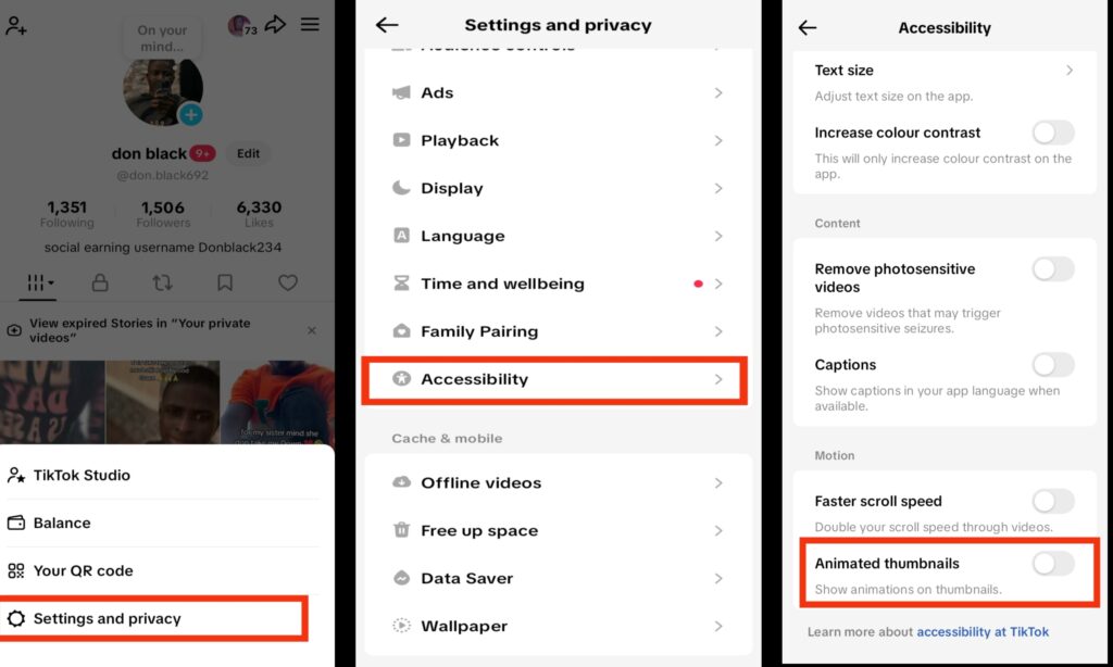 TikTok uses visual animations and motion effects to make content feel smooth and engaging, but these features can also keep your phone working in the background. Elements like animated thumbnails require extra processing power, even before you start watching a video. Reducing these effects helps lower background activity, which can improve battery performance without changing how you normally use the app.