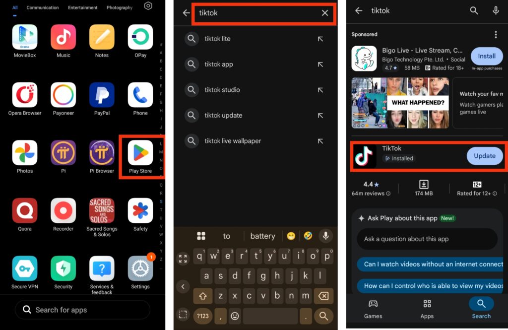 - Search for TikTok using the search bar.